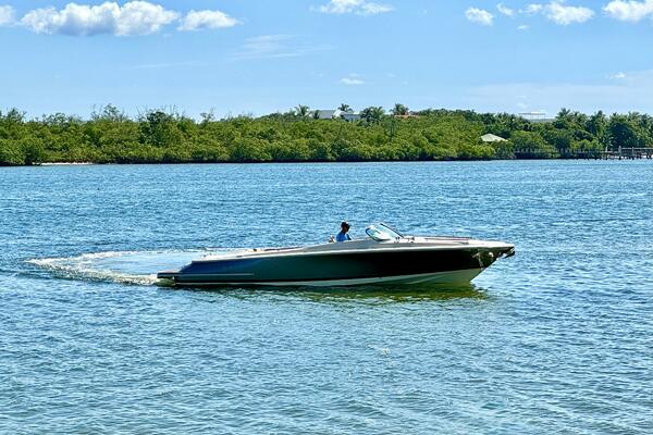 A modern classic. The Corsair 28 blends Chris-Craft’s mahogany-era lines with contemporary build quality and a ride that inspires confidence. The signature tumblehome stern, teak Heritage Package, and stainless hardware turn heads at every dock; the deep-V hull and flared bow deliver a dry, composed run when the chop picks up. It’s the rare dayboat that feels equal parts elegant cruiser and athletic runabout.